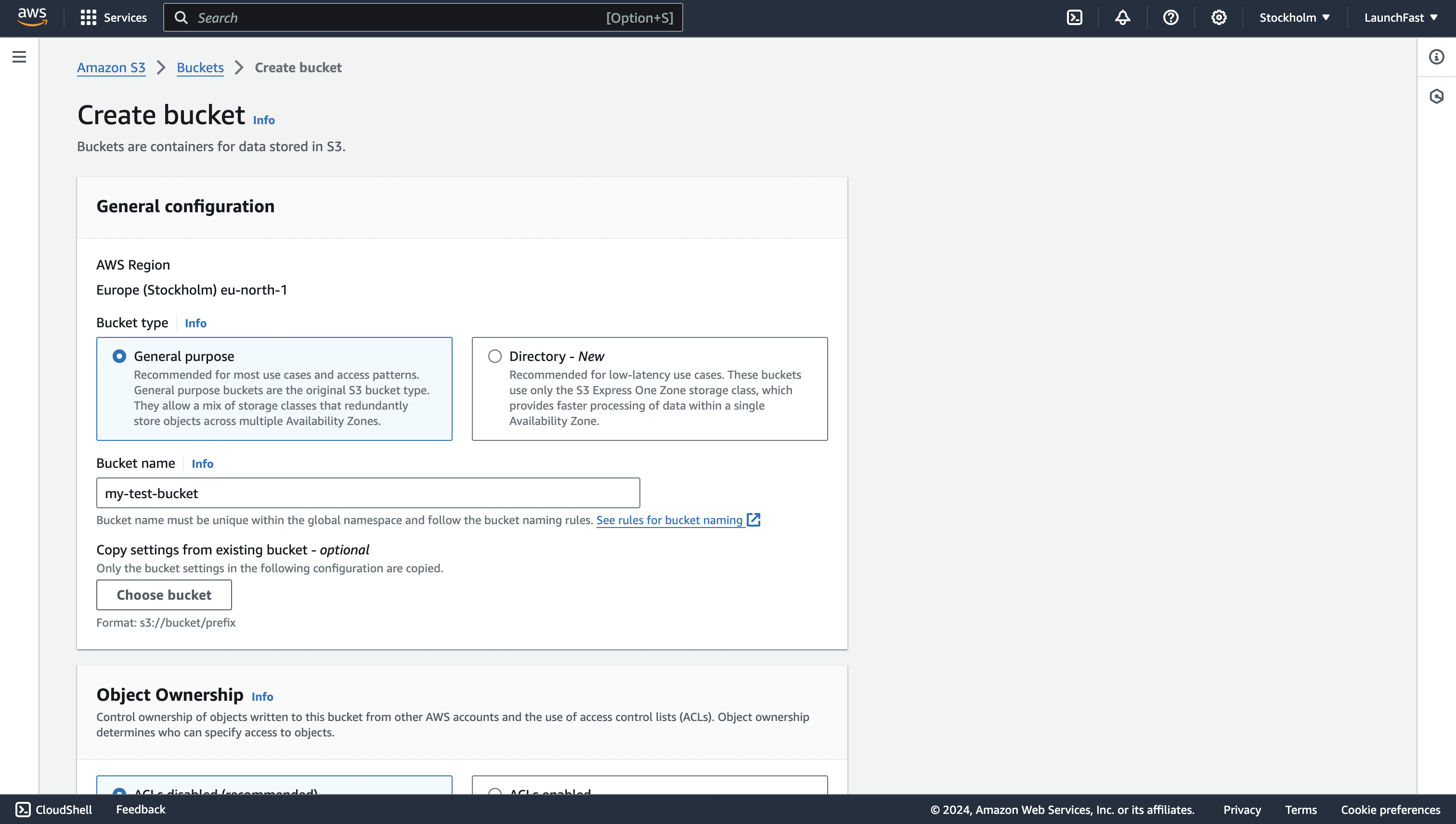 Finally, complete the bucket creation process by clicking the **Create bucket** at the end.